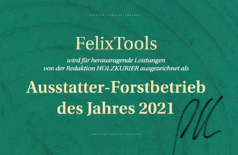 Die Holzkurier-Redaktion kürte FelixTools zum Forstausstatter des Jahres 2021.